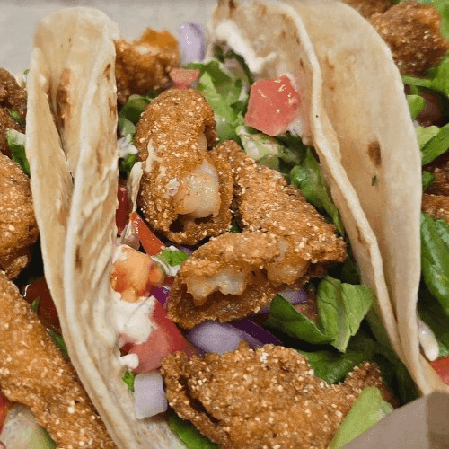 3 soft tortillas with crispy fried shrimp, lettuce, tomato, onion & our Signature Mexican crema