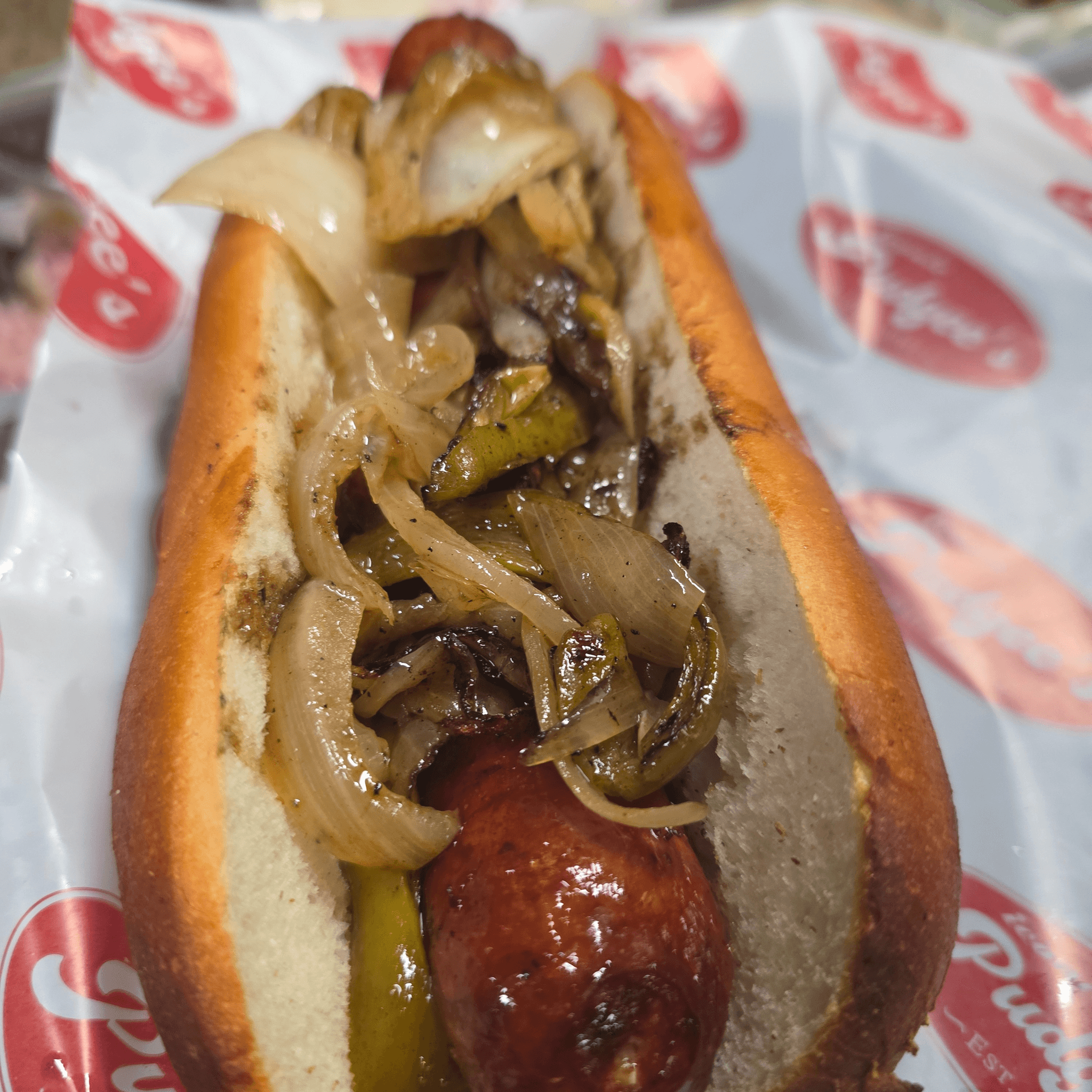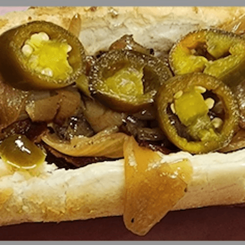 Authentic Italian sausage, loaded with onions & peppers on a toasted hoagie.